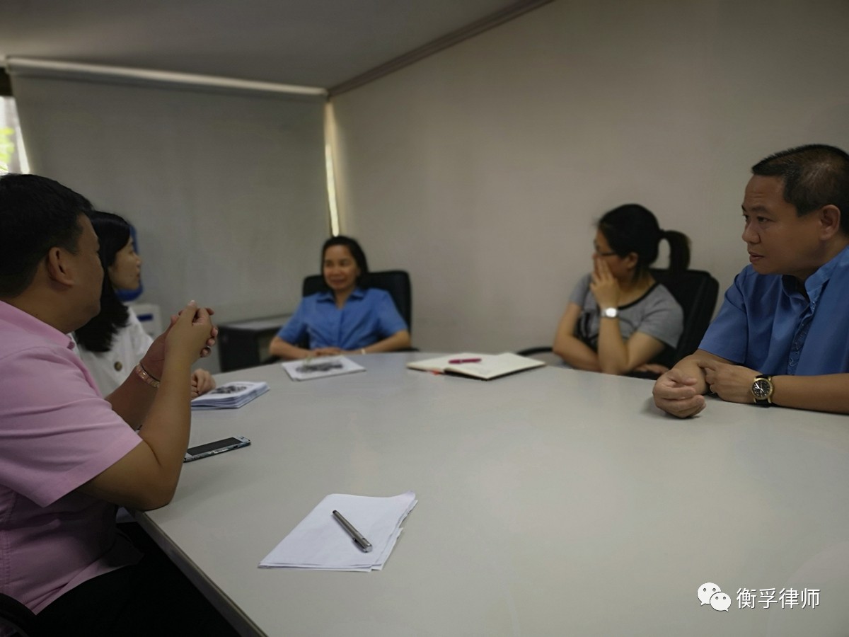 同时,李红俊律师与汪文芳律师与菲律宾当地的公司代表及中国在马尼拉的杰出商业代表进行了见面沟通,对于中国公民在菲律宾的实际发展情况有了进一步的了解和认知。 通过这些沟通和交流,李红俊律师与汪文芳律师对菲律宾与中国的经济、外交、用工等问题有了深入的认知,根据实地考察所了解的情况,我们将会在今后的工作中,结合菲藉劳工的实际需求,提供更加优质高效的法律服务。